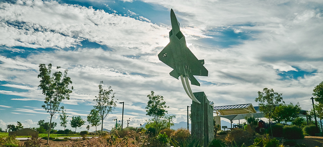 La pieza central de este parque es la exhibición de aviones a escala de cuarto F-22 Raptor Fighter. El Raptor fue seleccionado debido a su uso en el Ala 57 en la Base de la Fuerza Aérea de Nellis. Este parque es el futuro hogar del Monumento a los Veteranos del Estado de Nevada.